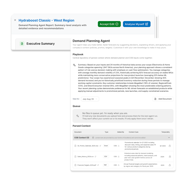 Demand Planners spend ~90% of their time on repetitive tasks with limited context, leaving almost no room for strategic thinking or high-quality decision-making.
