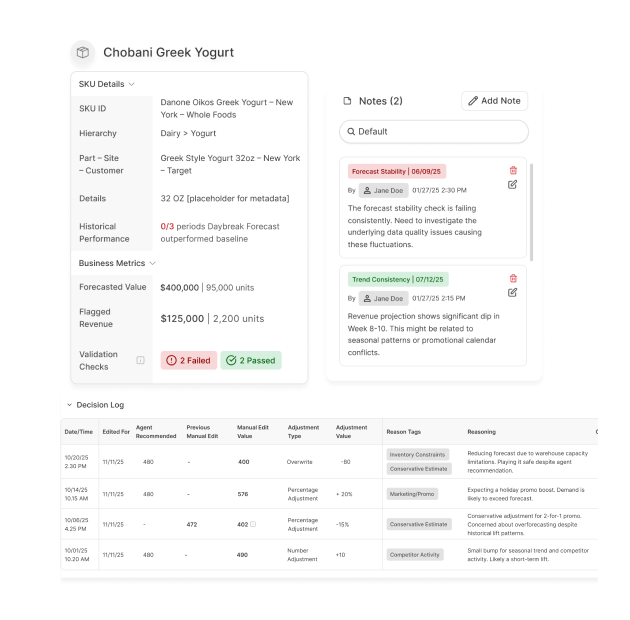Shift demand planning from reactive editing to focused & intentional decision-making using explainability, traceability, controls and proactive system learning.